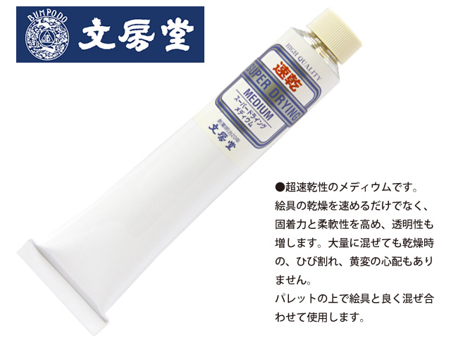短期間での製作に開発された、超速乾メディウムです。絵具の乾燥を速めるだけでなく、