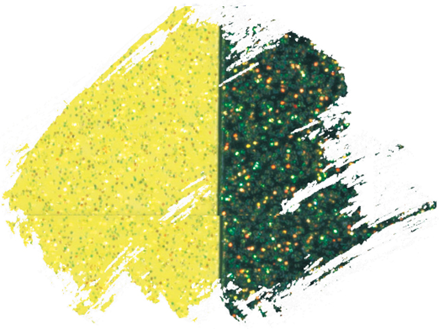 見る角度で変化する、ラメ入り絵具です。黒など濃い色の下地に塗るとよりいっそう輝き