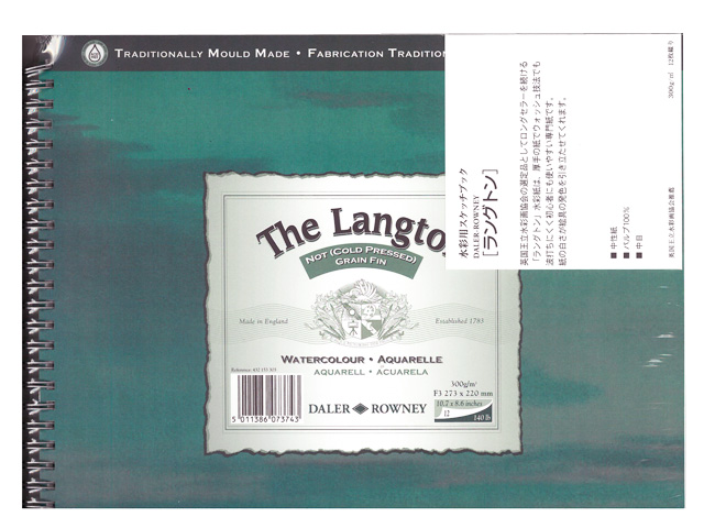 ラングトン水彩紙スパイラル/パルプ100%/中目300g中性紙/F3/12枚