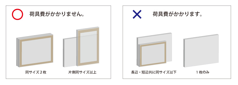 同サイズ、または片側が同サイズ以上のキャンバス、パネルを一緒にご注文頂くと梱包費用はかかりません。