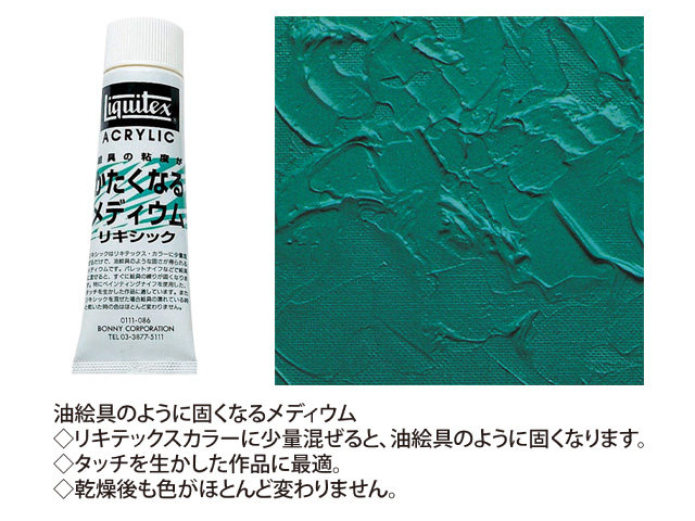 絵具に少量混ぜるだけで油絵具のような堅さが得られるメディウム。タッチを生かした