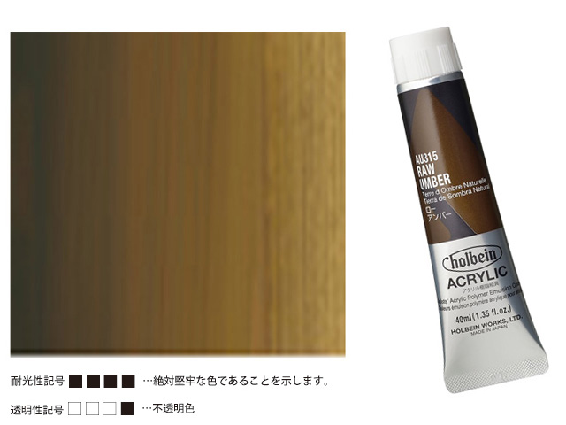 笹部洋画材料店 > アクリル絵具 > ホルベインアクリリック > ロー アンバー ロー アンバー 商品名 HAC40ml 315ロー アンバー 在庫状況 廃版(入荷予定はありません) JANコード 4900669163152 商品番号 2401315 シリーズ A-315 サイズ 40ml
