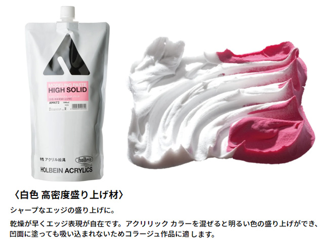 シャープなエッジの盛り上げに。乾燥が早くエッジ表現が自在です。凹面に塗っても吸い