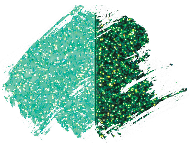 見る角度で変化する、ラメ入り絵具です。黒など濃い色の下地に塗るとよりいっそう輝き