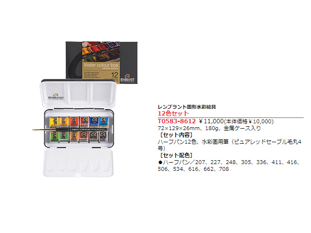 笹部洋画材料店 > 水彩・インク・ペン > 透明水彩絵具セット > 12色セット 12色セット 数量: 1 2 3 4 5 6 7 8 9 10 カートに入れる 商品名 レンHP金属12色セット 標準価格 14,300円(税込) 笹部価格 10,010円(税込) JANコード 8712079441463 商品番号 3053911 サイズ HP