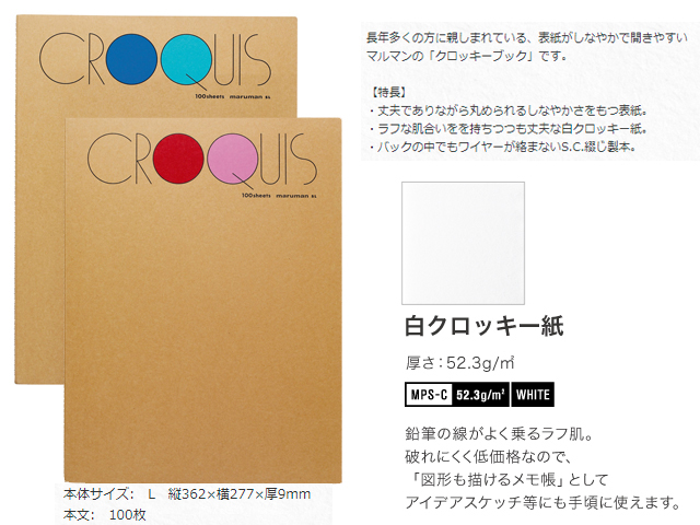 マルマンクロッキーブックSMLシリーズ/白クロッキー紙53.3g356×268/