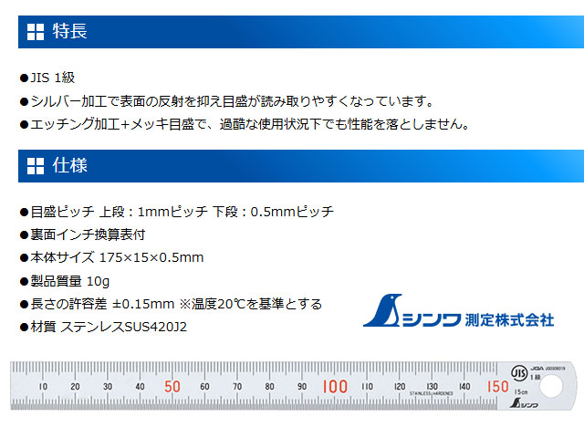 | 商品名 | シンワ)ステンレス直定規シルバータイプ 15CM |